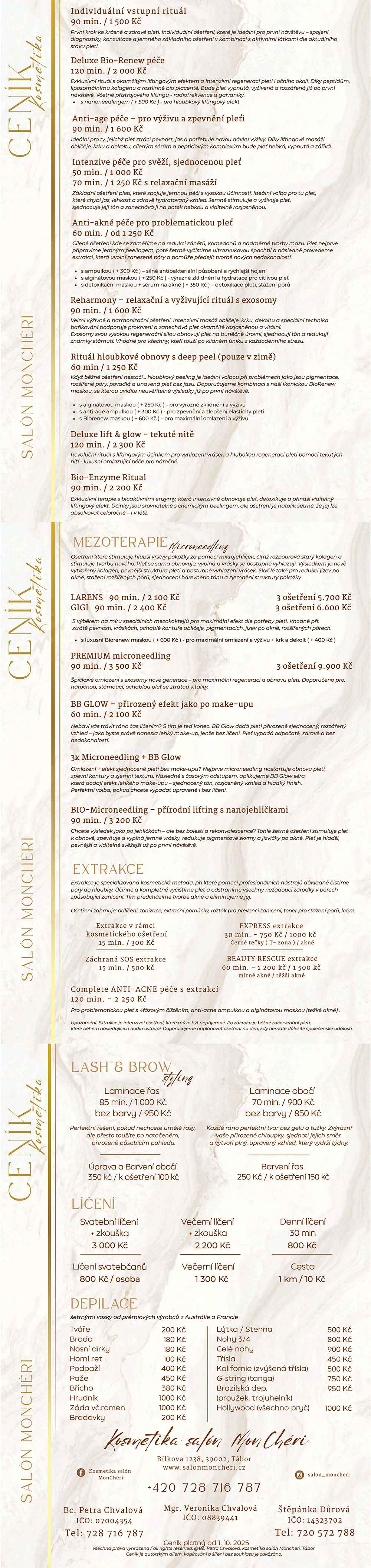 V salónu MonChéri se můžete těšit na kosmetické služby se vším všudy. Zajistíme Vám ošetření na nejvyšší úrovni, díky kterému bude Vaše pokožka zdravá a krásná.